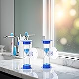 PRECISE TIMING: 2-minute sand timer perfect for tracking toothbrushing duration, ensuring proper dental hygiene habits EASY MOUNTING: Features a sturdy suction cup that easily attaches to bathroom mirrors or tiles for convenient placement DUAL PACK VALUE: Set includes 2 blue hourglass timers, ideal for couples or families sharing bathroom spaces VERSATILE USE: Functions as both a practical timing tool and an attractive desktop decoration piece DURABLE DESIGN: Constructed with quality plastic housing and precise sand flow mechanism for reliable daily use