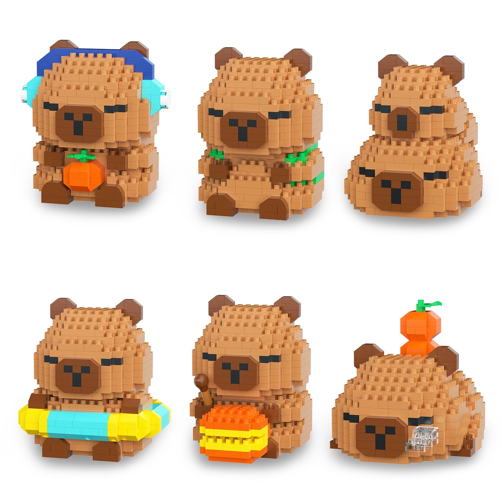 - COMPLETE SET: 1880-piece building block set featuring a charming capybara figure, decorative tree, flowers, and a functional storage box design