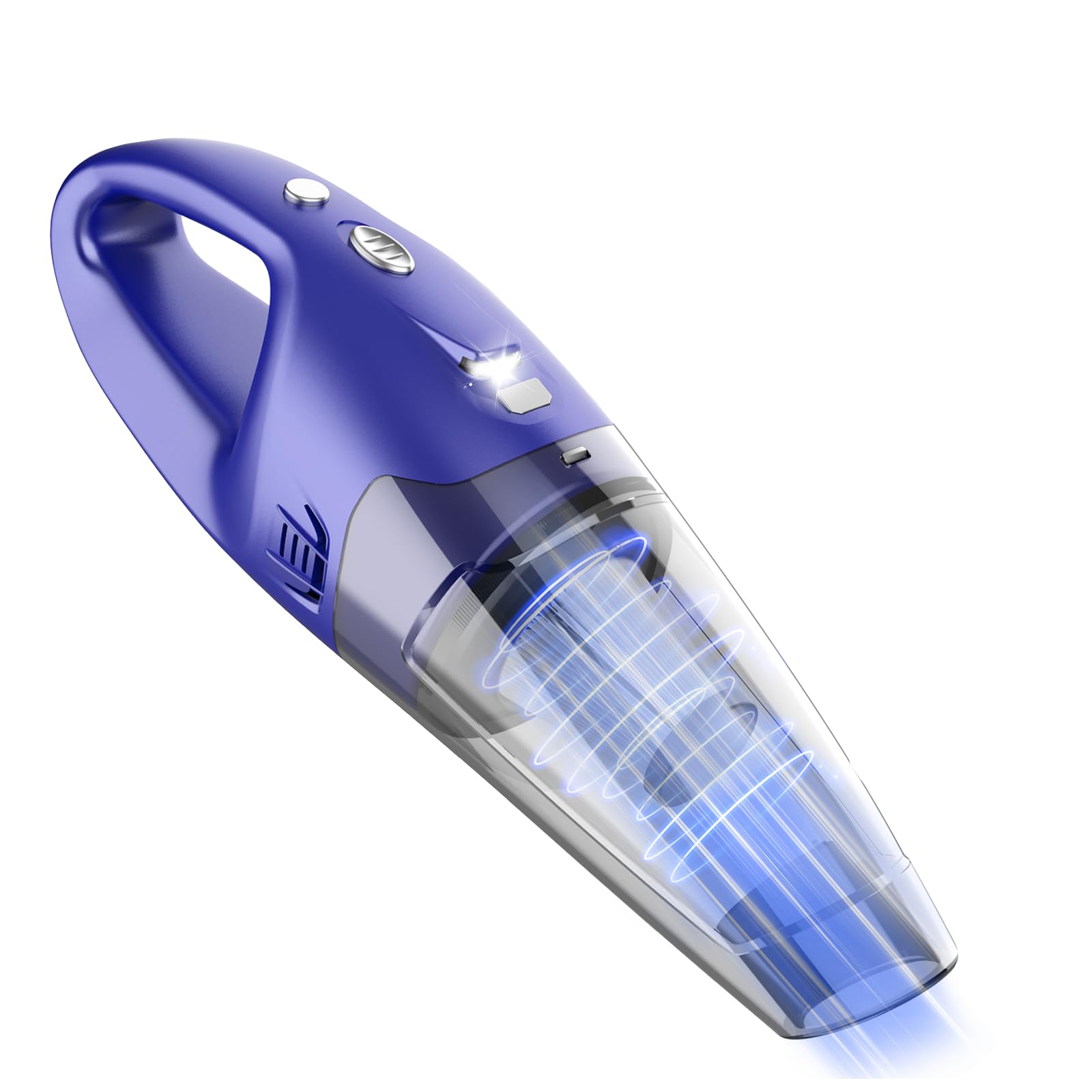 - Superior Suction & LED Light:The handheld vacuum cordless has 6kpa suction power to help you deal with a variety of dirt such as small debris, hair and food residue. The powerful motor can help you to do all-around cleaning. The bright LED light makes the hand vacuum clear easy to clean in dark areas.