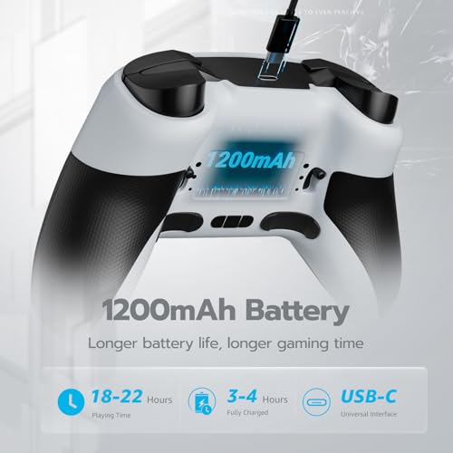 - 【Long Battery Life】The wireless pc controller built-in 1200mAh rechargeable battery provides up to 20 hours of playtime. With USB-C fast charging, the Windows controller is fully charged in about 2.5 hours, keeping you ready for long gaming sessions.