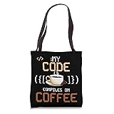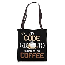 Funny dev design featuring syntax symbols and a hot cup of coffee. My Code Compiles on Coffee design is ideal for programmers who know their code, and brains compile best with caffeine. Perfect for coders, IT pros, and web developers who brew brilliance. My Code Compiles on Coffee design is a clever play on programming and espresso that makes debugging look better. 16” x 16” bag with two 14” long and 1” wide black cotton webbing strap handles. Made of a lightweight, spun polyester canvas-like fabric. All seams and stress points are double-stitched for durability, and the reinforced bottom flattens to fit more items and hold larger objects. Spot clean/dry clean only.