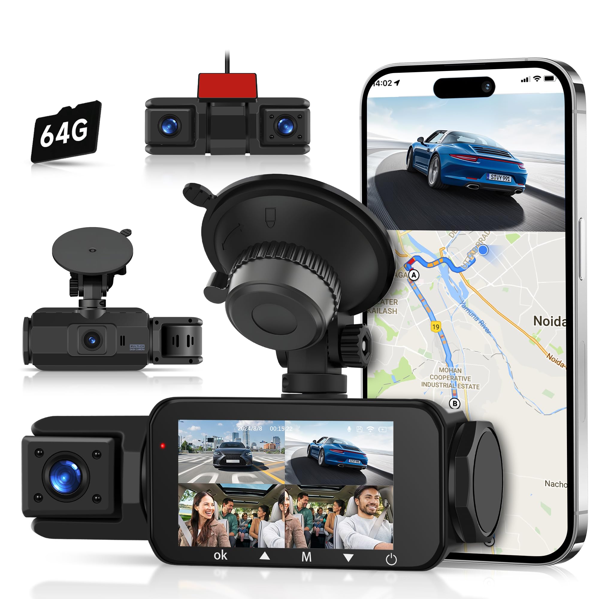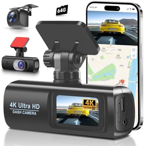 Dash Cam 4K Front and Rear Full HD Dash Camera for Cars, Included 64GB Card, Built-in WiFi, 1.47" IPS ScreenLoop Recording, G-Sensor, Night Vision, Parking Mode