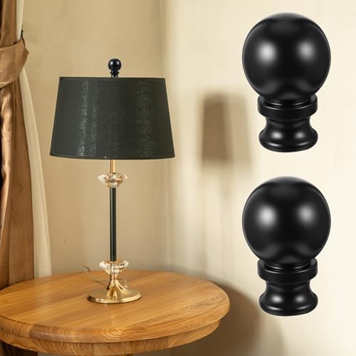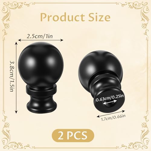 2PCS Lamp Finials Ball Knobs for Lamps, Black Finial Knobs Lamp Shade Screw Caps, for Table and Floor Lamps, 1/4-27 Thread, 1.496" H X 0.985" W X 0.669" D