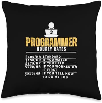 Programmer Hourly Rates Funny Software Developer Throw Pillow