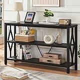 HOMISSUE Sofa Console Table, Rustic Console Table with 3-Tier Storage, Engineered Wood Sofa Tables with Open Shelves, Heavy Duty Entryway Tables for Living Room, Hallway (47 Inch, Black)