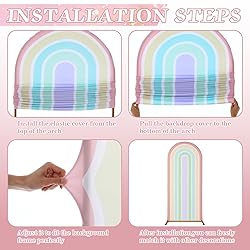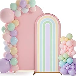 - Features: Our two set rainbow arch backdrop cover is suitable for size, good material, sweet color, suitable for many types of birthday parties, weddings, baby showers, photography activities, etc. It is an ideal choice to enhance the atmosphere of the event. Specifications: Material: spandex fabric Color: macaron color Size: pink arch backdrop cover: 7.2 ft Rainbow arch backdrop cover: 6 ft Package includes: 1 x Pink arch backdrop cover 1 x Rainbow arch backdrop cover Notes: Manual measurement, please allow slight errors on size. The color may exist a slight difference due to different screen displays
