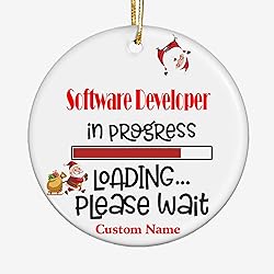 Software Developer Christmas Ornament – Funny Loading in Progress Ceramic Ornament with Santa Design, Custom Name Gift for Professionals, Holiday Tree Decoration Keepsake, Christmas QOFH7z