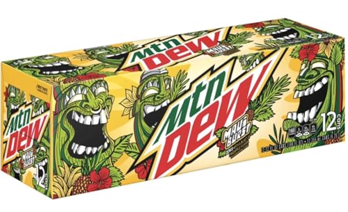 12 pack 12oz cans Mountain Dew Maui Burst soda!! The flavor will definitely give you summer vibes with every sip. Also, it's the tropical getaway you didn't get to have in the form of a drink! This 12 pack comes in the original cardboard packaging as shown in the picture!! This flavor comes in a neon yellow and green 12-ounce can with tiki and pineapple illustrations all over it. As you might have guessed, it's your favorite Mountain Dew with a punch of pineapple flavor. So, if you like your drink citrusy, tangy, and fizzy, then this one's worth a try.