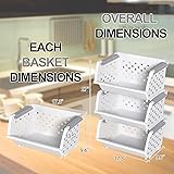 Parlynies 3 Tier Plastic Kitchen Stacking Storage Baskets, Stackable Basket for Organizing Food, Snack, White