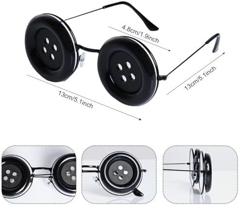 Specification: Quantity: 1 pair of button eyes glasses Material: plastic, metal Color: black Button Diameter: 4.8 cm / 1.9 inch Eyeglasses Frame Length: 13 cm / 5.1 inch Horror movie inspired button eyes glasses are suitable for horrible character role play, stage performance, Halloween Costume, mother costume, photo props, etc.creepy Halloween costume stuff accessories for your cosplay dress up party.