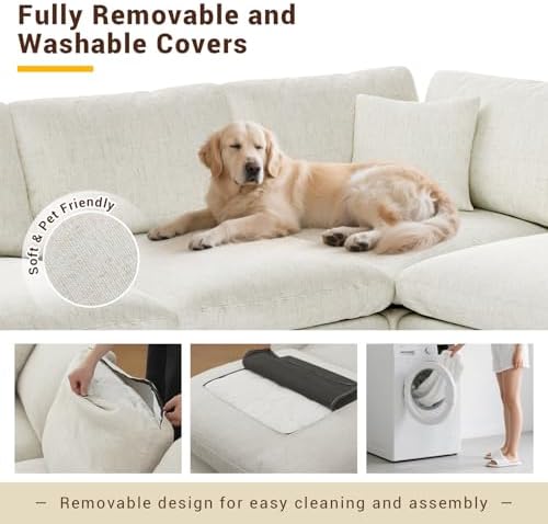 - 【Removable Sofa Covers & Easy to Install】The removable design makes cleaning and washing easier, keeps the sofa clean and hygienic and extends the service life of the couch.Enjoy life to the fullest without worrying about a dirty sofa!The modular sectional sofa‘s comes with clear instructions and all the accessories to help you assemble it easily and quickly