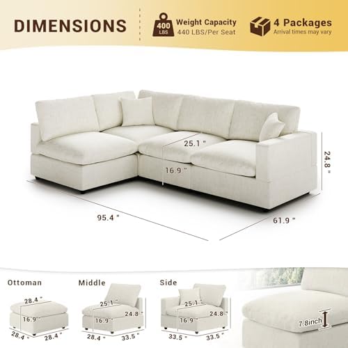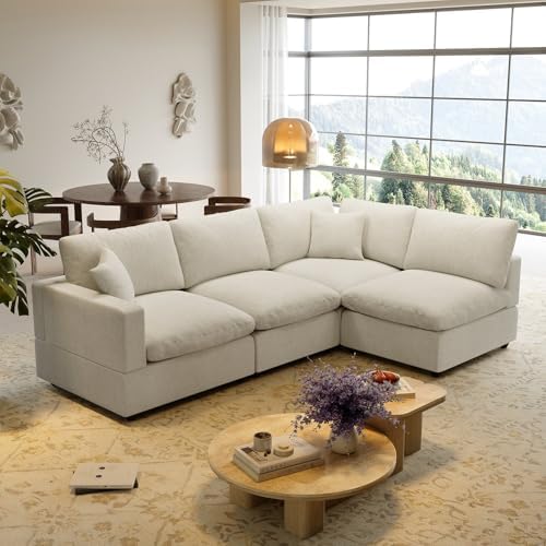 Cloud Modular Sectional Sofa, Down Filled Couch,Convertible Sectional Sofa for Living Room,Modern Deep Seat Comfy Cloud Couch (4 Seater,Cream White)