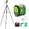 Laser Level with 60 Inch Tripod, Huepar 100Ft Self Leveling Laser Level Rechargeable Green Cross Line Lazer Leveler Tool for Picture Hanging, Tile, Home Renovation, 360° Magnetic Bracket &Target Plate
