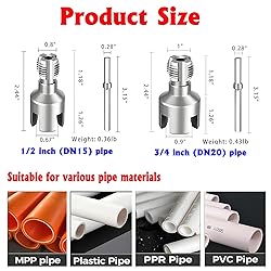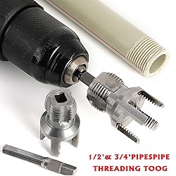 VERSATILE COMPATIBILITY: Works with both internal and external pipe threading, compatible with electric drills for efficient operation on 1/2" and 3/4" pipe sizes,Works seamlessly with PPR, PVC, plastic, and MPP pipes — ideal for plumbing repairs, DIY upgrades, and electrical conduit installations COMPLETE KIT: Includes threading dies, guide rods, protective gloves, thread seal tape, and PVC pipe fittings for comprehensive pipe threading tasks,Whether you're a DIY enthusiast or a professional plumber, the PVC Thread Maker Tool included in this PVC Pipe Threading Plumbing Kit is an essential addition to your toolkit DURABLE CONSTRUCTION: Made from high-quality hardened steel threading dies and precision-machined components for long-lasting performance,The combination of strong PVC and top-grade steel ensures long-lasting performance, making this tool a reliable choice for both professional and home projects EASY OPERATION: Simple installation process allows quick attachment to power drills, enabling fast and precise thread cutting on pipes,The lightweight carbon steel construction makes this threading tool easy to carry, especially suitable for home repairs or outdoor projects. DUAL SIZE CAPACITY: Say goodbye to the trouble of changing tools! Features specialized threading dies for both 1/2-inch and 3/4-inch pipe sizes, Our thread processing tools can easily complete the internal and external thread processing of pipes in one go. perfect combination, easily and efficiently complete various pipe work. PERFECT LEAK-FREE THREAD: The sharp cutting edge can produce clean and tight threads, and is equipped with professional waterproof raw tape to prevent pipeline leaks and improve pipeline flow efficiency