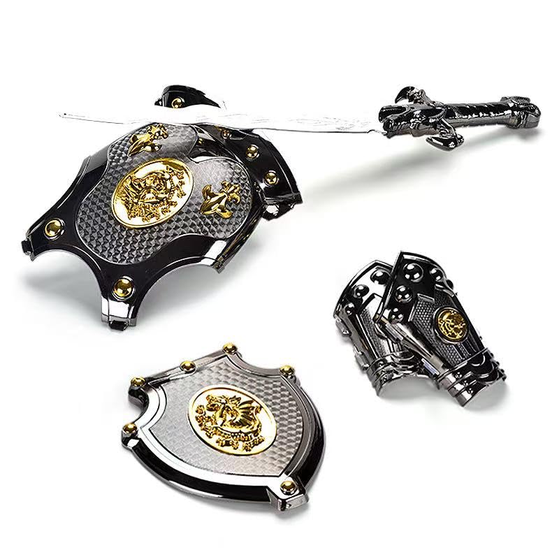 Unleash your child’s inner hero with our Medieval Knight Armor Costume Set! Designed for boys ages 3-5, this complete role-play kit transports kids to an age of chivalry and adventure. The realistic plastic armor, sword, shield, and vambrace feature intricate dragon motifs and crusader-inspired details, encouraging imaginative battles and historical exploration. Crafted for comfort and safety, the lightweight armor adjusts at the back for a secure fit, while meeting strict US/EU toy standards (ASTM F963 & CE). Perfect for Halloween costumes, themed parties, or daily pretend play, this set teaches bravery through immersive role-play. Gift the magic of knighthood: Each set arrives in a premium gift box, ready to delight any young adventurer. Let their quest begin!
