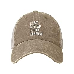 Jmmxp Funny Computer Programmer Saying Eat Sleep Code Cowboy Hat Men Mesh Baseball Cap Gifts Trucker Hat Women Dad Hats Black