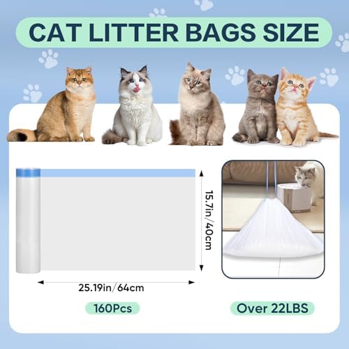 - Extra Large Capacity & Long-Lasting: Includes 160-count cat litter bags for automatic litter box. 25.19" x 15.7" heavy-duty litter box liners hold 10-12 gallons—fewer changes, less waste.