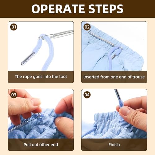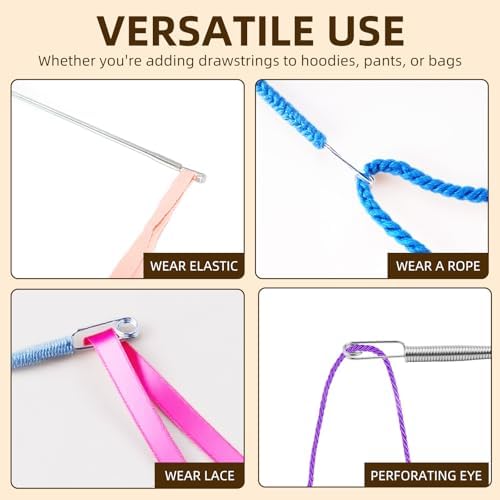 - Quick & Effortless to Use - Simple 3-step process of drawstring threader tool: 1) Insert the spring tip into the drawstring channel, 2) Attach your rope/elastic to the tool’s loop, 3) Pull the tool through—done! Our multifunctional spring threader makes it a breeze to use ropes, elastic bands, and cords.it’s a must-have tool in every home.