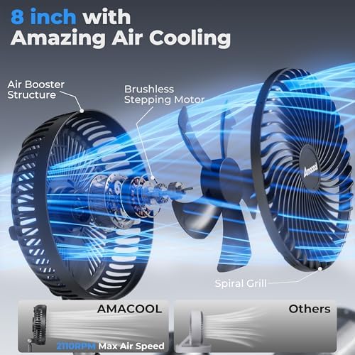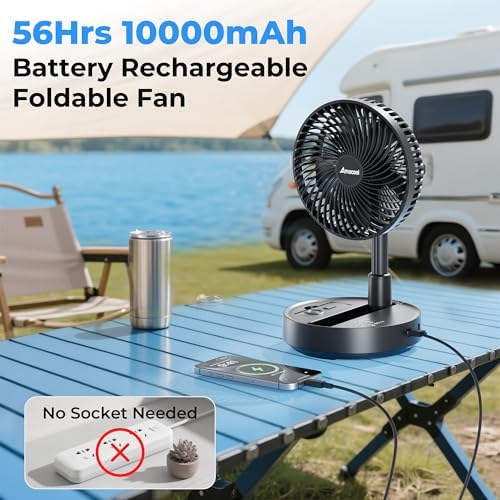 AMACOOL 8'' Foldable Oscillating Fan, 10000mAh Battery Operated with Remote & Timer, Height Adjustable Portable Standing Fan, Quiet USB Output for Camping RV Picnic Home Office Outdoor