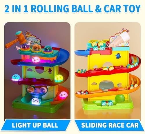 - 【Perfect Gift】This 2-in-1 ball & car ramp toy is easy to assemble and has a simple gameplay. It is suitable for various game scenarios. The perfect gift for children 2 years and older at Christmas, birthday, Thanksgiving, New Year or other holidays.