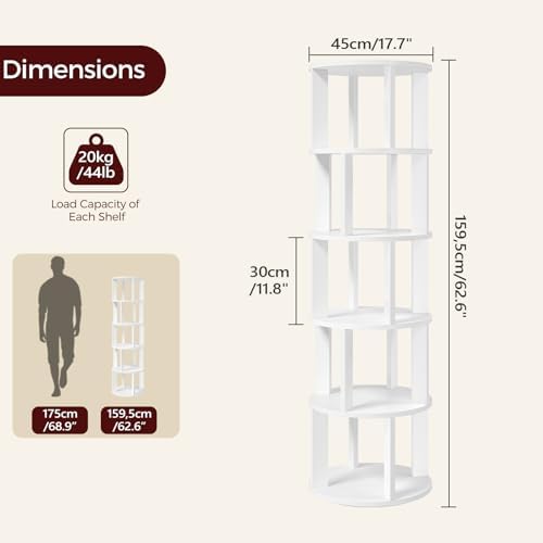 • Sturdiness & Durability: Made from high-quality panels, this rotating bookshelf features a smooth, easy-to-clean surface. Supports up to 44 lb per shelf, ensuring secure and reliable storage