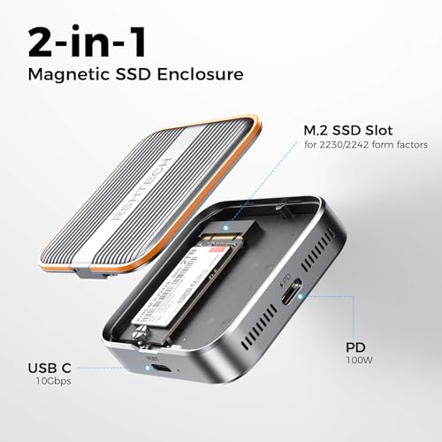 RSHTECH Magnetic M.2 NVMe SSD Enclosure 10Gbps USB C 3.2 to NVME Adapter Support PD 100W and SSD Size 2230/2242 B+M M-Key for iPhone 16 15 Pro/Pro Max/Plus ProRes, iPad Pro and More