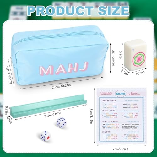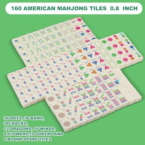 - Packing List: mahjong set includes 160 0.8 Inch mini travel mahjong tiles including 36 dots, 36 bams, 36 cracks, 12 dragons, 16 winds, 8 flowers, 10 jokers, 6 blanks and 2 dice; And comes with 4 wooden rulers, 1 American mahjong bag and 4 beginner mahjong rule cards, which are very suitable for you to carry when traveling