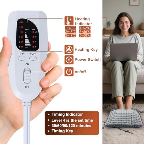 - 【6 Temperature & 4 Timer Settings】Our electric heated foot warmer offers 6 heat settings (40°C/104°F to 60°C/140°F), so you can pick the perfect warmth based on the room temp and your preference. It also comes with an auto-shutoff feature with 30/60/90/120-minute options—saves energy and prevents burns from overheating.