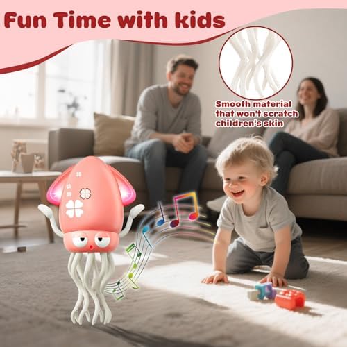 - Meet the Interactive Dancing Crawling Octopus:A Joyful Companion for Little Ones! This adorable octopus wiggles, spins, and crawls with twinkling lights and cheerful music, gently encouraging babies to explore movement and take their first steps. Designed to support active play and early sensory development, it’s a wonderful choice for babies ove 36 months, toddlers, and first birthday gifts.