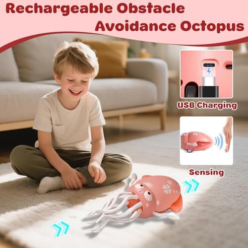 - Smart Obstacle-Avoiding Playmate: Equipped with intelligent sensors, this crawling octopus detects and smoothly navigates around obstacles, keeping the fun uninterrupted. As it dances and changes direction, it captures children's attention and motivates them to crawl and explore – a delightful addition to sensory play and early learning toys for 3 year old boys and girls.
