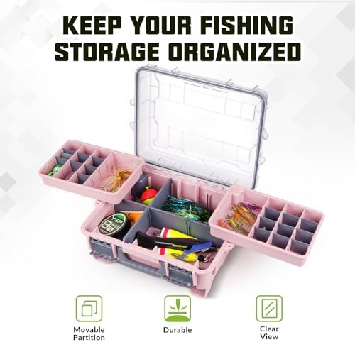 THKFISH Waterproof Tackle Box, Portable Fishing & Tackle Storage Box with Two 3500 Stowaway Boxes and Removable Dividers, Premium Tackle Box, Thicker Floating Airtight Stowaway,Pink/Green/Blue/Grey Visit the THKFISH Store