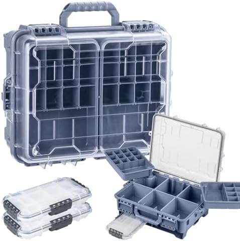 - STURDY AND WATERPROOF: The waterproof tackle box is made of high-quality ABS+PP material, which ensures maximum durability and impact resistance, perfect for storing bait and other fishing gear. The waterproof tackle box also features a 360-degree waterproof airtight rubber gasket that keeps lures, floats and other accessories dry. And with its floatation properties, you won't have to worry about dropping it in the water, making it a great companion for fishing from your boat or kayak