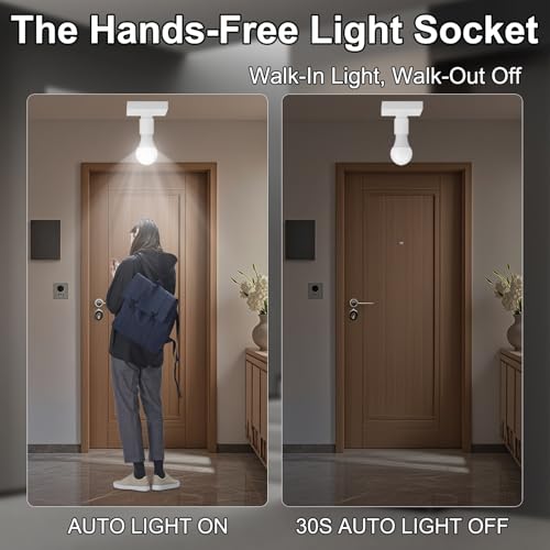 - Energy-Saving & Eco-Friendly: The dusk to dawn light socket automatically turns on when motion is detected and off after a delay, avoiding unnecessary lighting. This energy-efficient design saves up to 80% in power consumption, making it perfect for entrances, hallways, staircases, and warehouses