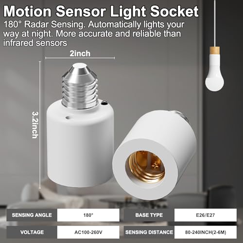 Motion Sensor Light Socket, E26/E27 Motion Sensor Light Sockets Motion-Sensing Adapter with Auto On/Off, Automatic Dusk-to-Dawn Motion-Activated Lamp Holder for Porch Storage Room Garage