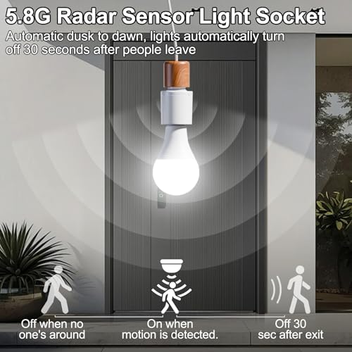 - Radar-Motion Detection: This screw in motion sensor light socket features a high-sensitivity radar sensor that provides 360° human motion detection. It automatically turns the light on, andTurn off the lights 30 seconds after the person leaves, offering higher accuracy and stronger interference resistance than traditional infrared sensors