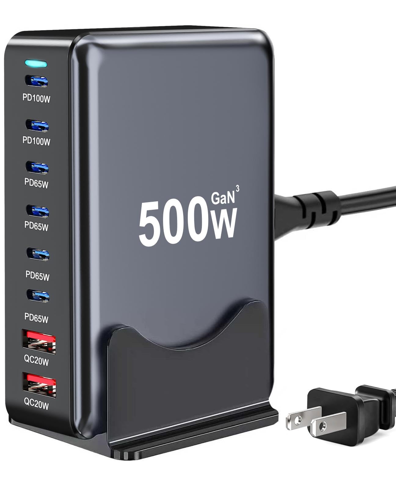 - Dual 100W PD Fast Charging Station: Experience blazing-fast charging with dual 100W power delivery ports, ideal for MacBooks, laptops, and high-power devices. The remaining 8 ports deliver efficient charging for phones, iPads, and wearables. This multi charging station cuts down wait times, ensuring you’re always powered up. Perfect for multitaskers and busy professionals.