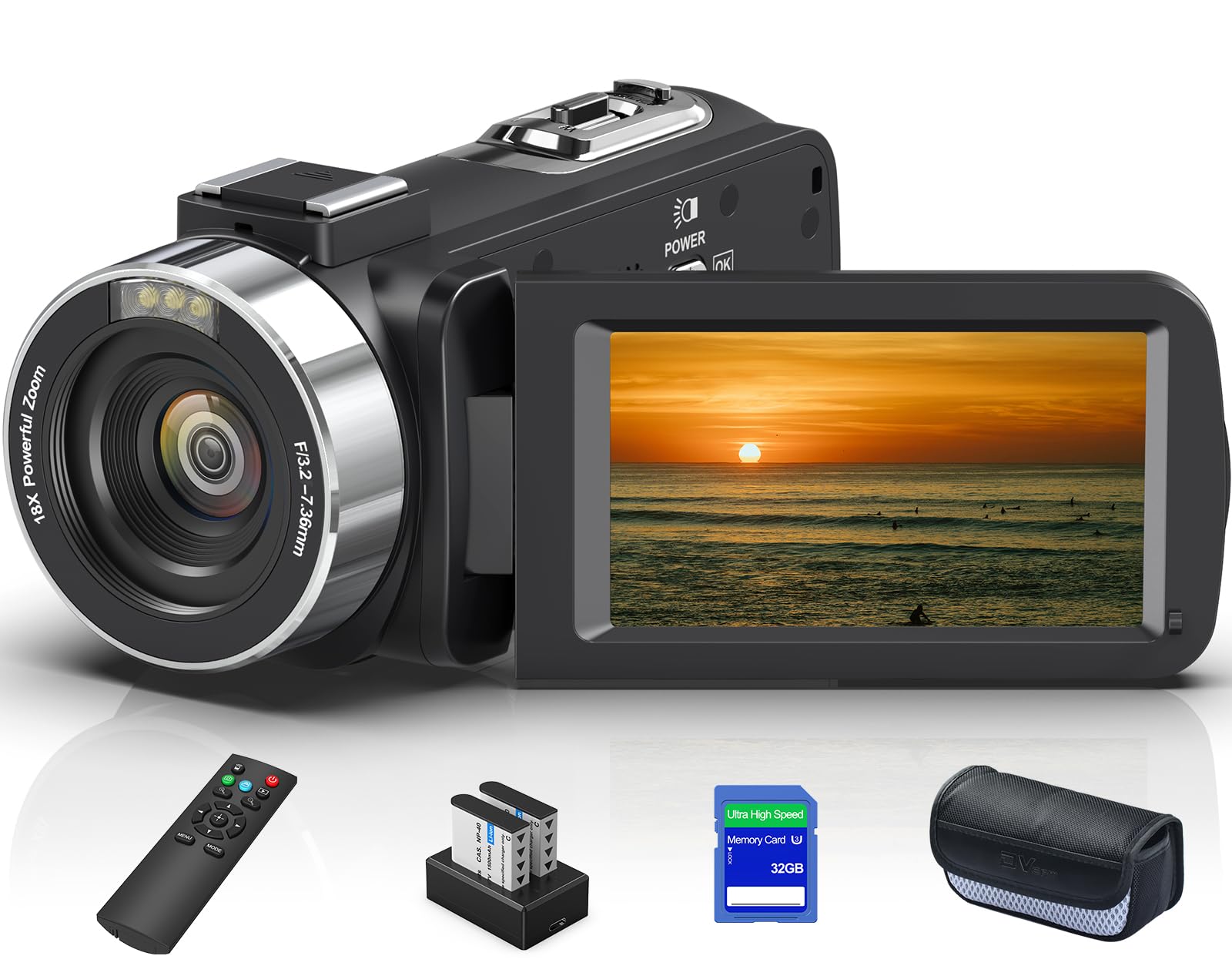 - 【8K Video & 64MP Photos Resolution】This video camera supports up to 8K video resolution,a stunning 64MP image resolution,up to 60FPS(4K/60FPS, 8K/15FPS) frame rate,and an 18X zoom capability. Featuring a 3.0-inch touch screen that rotates up to 270 degrees,it ensures easy operation,suitable even for beginners and children. Thus,this 8K video camera can capture vivid,detail-rich imagery,assisting you in capturing meaningful moments.