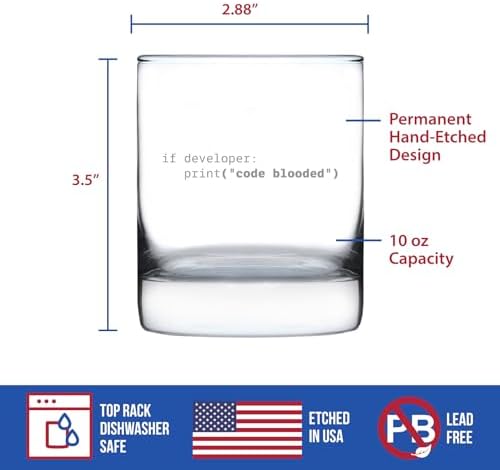 Give them a glassware update with a coding themed cup scripted with witty syntax, the perfect gift that keeps on refreshing. - Made in USA - American made 10.25 oz double old fashioned glass with heavy weighted bottom suitable for whiskey, scotch, bourbon, and cocktails. - Etched text (not printed) - The text is engraved by hand in Colorado and will never wear off - Individually gift boxed glasses designed to ensure safe delivery - Dishwasher safe! Great for daily use Whether you prefer your whiskey cocktail neat or on the rocks, this barware quality, hand engraved old fashioned lowball glass is sure to be a good gift for any drink celebrating the end of a productive work week! Whether you're wishing a big happy birthday to your favorite whisky lover like your brother, dad, best friends, or coworkers, this unique cup will leave your recipient laughing at the memories created with this gift for years. The design is hand engraved (not printed) into the durable, highball tumbler so that it never wears off. These are fantastic presents that will be appreciated for years to come. This isn’t a cheap novelty gag gift. This is quality, dishwasher-safe glassware that is perfect for use as your daily glass. All Bevvee glasses are individually boxed and protected for safe delivery. The carefully etched text will never wear off with heavy washing due to the engraving. Each letter is carefully engraved by hand by skilled artisans in our small shop in Northern Colorado. We know you probably have a lot of gift ideas for your loved ones, so thanks for considering our Bevvee Rocks Glasses. Cheers!