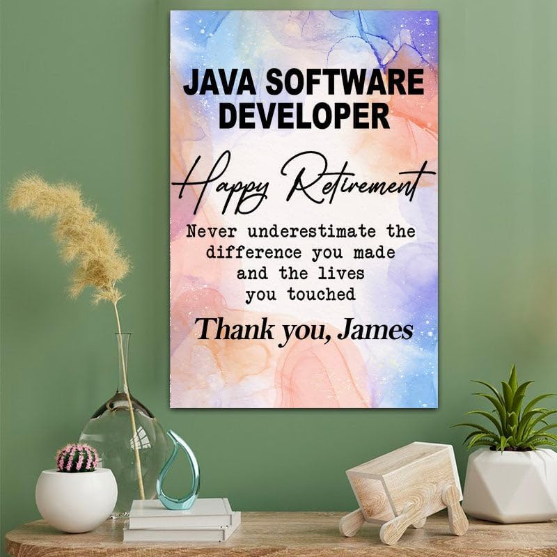 Custom Java Software Developer Canvas Print, Watercolor Abstract Style – Retirement Appreciation Message, Personalized Poster Style Gift for Home or Office, Ready to Hang
