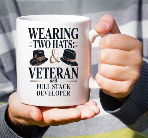 Gift Idea Gift Design Idea for Full Stack Developer, for, Wearing Two Hats and Full Stack Developer 11 Oz White Ceramic Coffee Mug