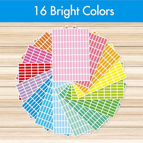 3328 Color Coding Labels, 16 Colors Blank Stickers Mini Rectangular Labels 1” x 3/8” (25 x 10mm), Colored Assorted Sticker for Marking Projects, Boxes, Jars, Storage Containers, Files