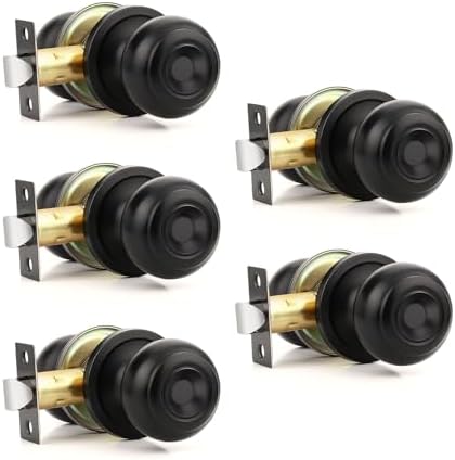 5 Pack Black Door Knobs Interior Passage Door Knobs Matte Black Closet Door Knob Interior Door Knob Passage Keyless Non-Locking Doorknob Flat Ball Doorknobs for Hallway Storeroom Pantry