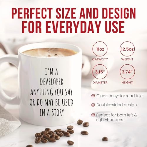 Sarcastic Developer Mug - Coding Humor Coffee Cup - Programmer Funny Gift From - Techie Tea Mugs - Software Engineer Cups - 11 Oz Ceramic Gifts For It Professionals, Birthday, Him, Her, Christmas