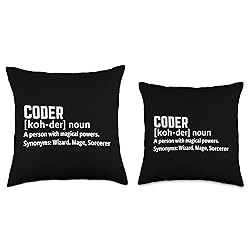 - Showcase your coding skills and humor with this playful design featuring the definition of a coder as a person with magical powers. Highlighting synonyms like wizard and mage, it celebrates the unique talent and creativity of programmers. Perfect for anyone passionate about software development, coding, and problem-solving. Let the world know that coding is not just a profession but an art of logic and magic. Ideal for wearing at tech conferences, hackathons, or casual meetups with fellow coders.