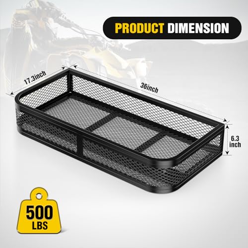 Nilight ATV Front Cargo Basket, 17" W x 36" L x 6.3" H Racks and Baskets with Steel Mesh Frame, Heavy Duty ATV Storage Cargo Box Attachments for Luggage Carrier