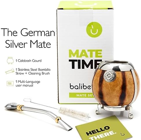- TRADITIONAL MATE SET - This yerba mate tea set includes: A natural handmade mate gourd - Mate cup (Calabaza) with a german silver ring rim and base, a bombilla (mate straw) with removable filter head for optimal cleaning and brush. Please read the included manual with clear instructions before any use for a long lasting product.