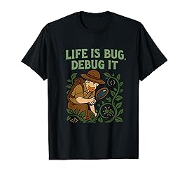 - Show off your passion for programming with a playful graphic featuring a bold phrase Life is a bug, debug it and a curious explorer inspecting a coding bug in a wild code vine. Rendered in green and brown tones with a fun adventure font, this eye-catching design is a perfect novelty for programmers, software engineers, coders, developer fans, tech enthusiasts, and any computer science lover looking to add a touch of coding humor to their gear.