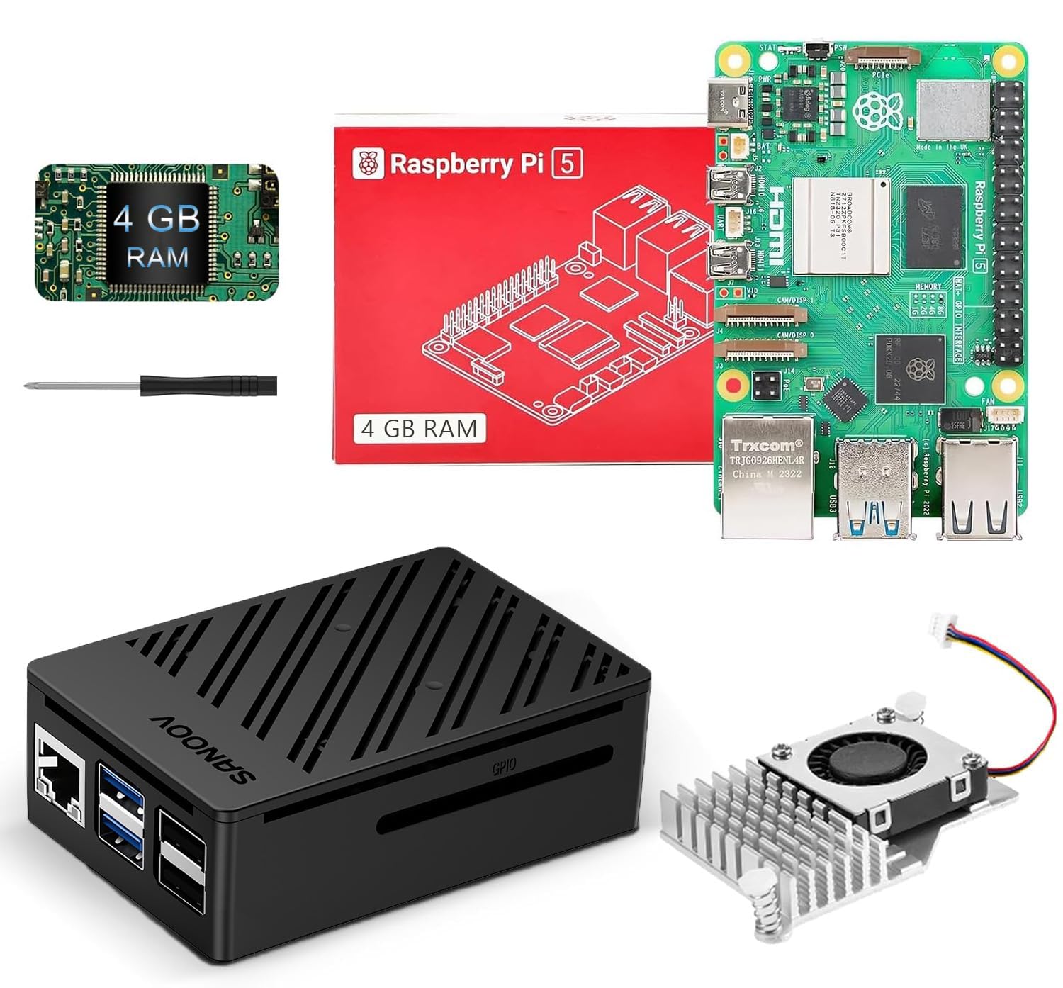 - Package Include: You will get 1x Pi 5 4GB Single Board,1x SANOOV ABS Case,1x Active Cooler,1-year free warranty, lifetime service, 24-hour prompt and friendly response.