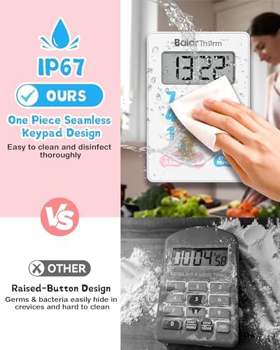 BaldrTherm Digital Kitchen Timer, Magnetic Waterproof Countdown Timer for Cooking, Shower, Workout, Classroom, Hair Color Processing, Cute.