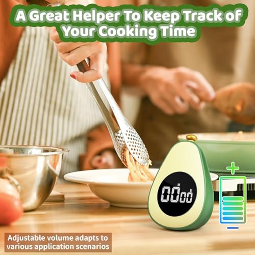 Avocado Digital Countdown Timer, Cute Kitchen Gadget, Adjustable Volume Timer for Cooking and Baking, One-Button Design, 99-Minute, Use AAA Battery, Portable Digital Timer, Home Kitchen Tool